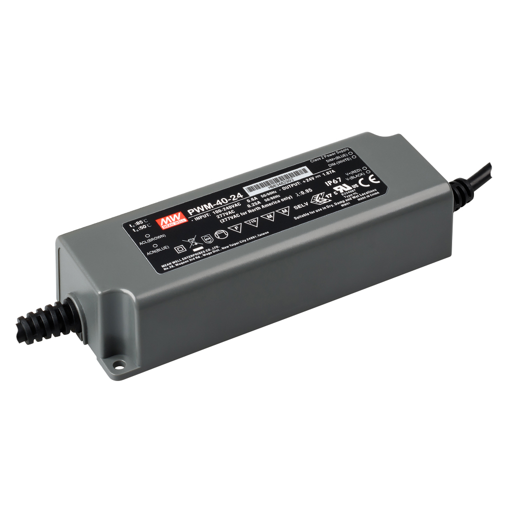 Блок питания PWM-40-24 (24V, 1.67A, 40W, 0-10V, PFC) (MEAN WELL, IP67 Пластик, 5 лет) 021004 в Владимире