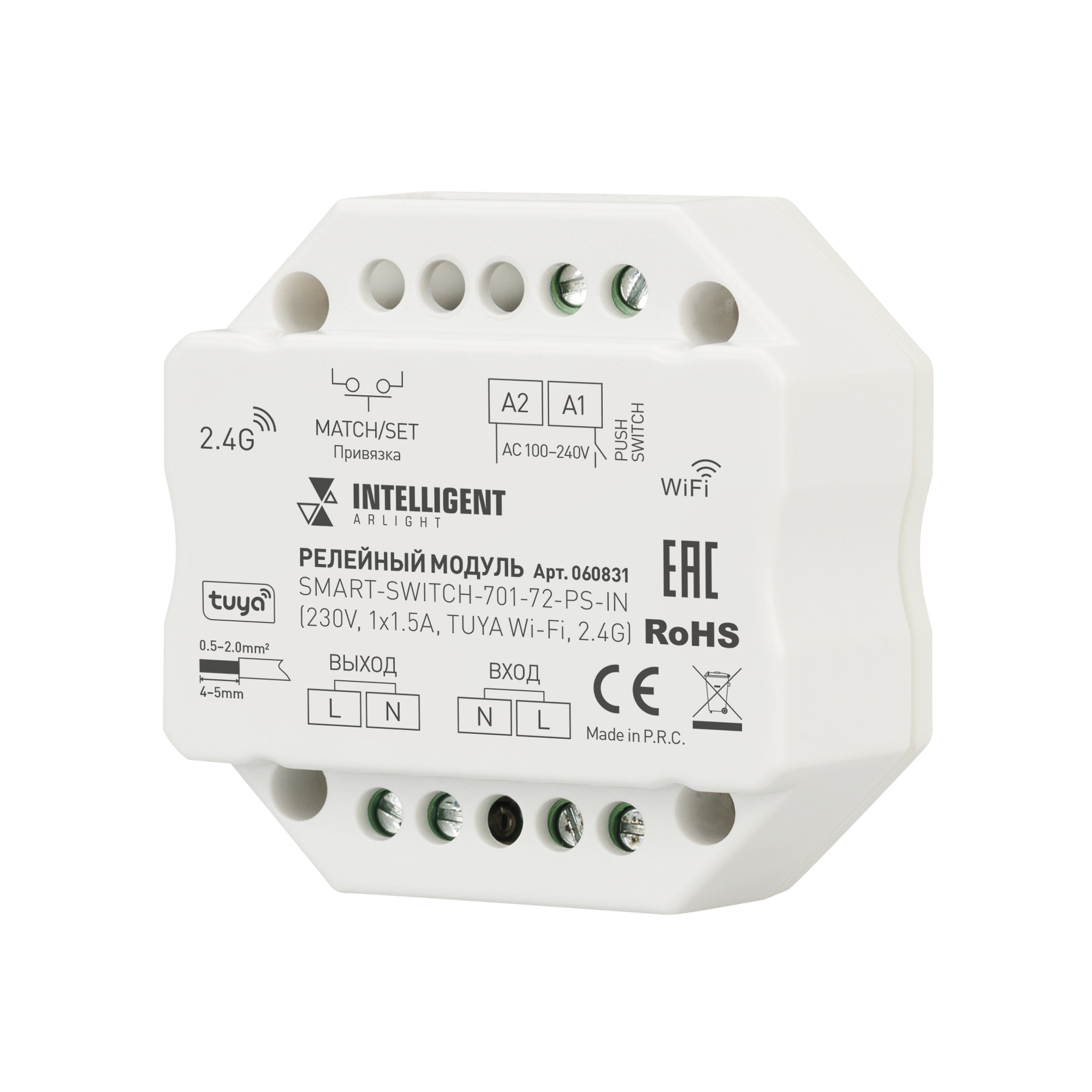 INTELLIGENT ARLIGHT Релейный модуль SMART-SWITCH-701-72-PS-IN (230V, 1x1.5A, TUYA Wi-Fi, 2.4G) (IARL, IP20 Пластик, 5 лет) 060831 в Владимире
