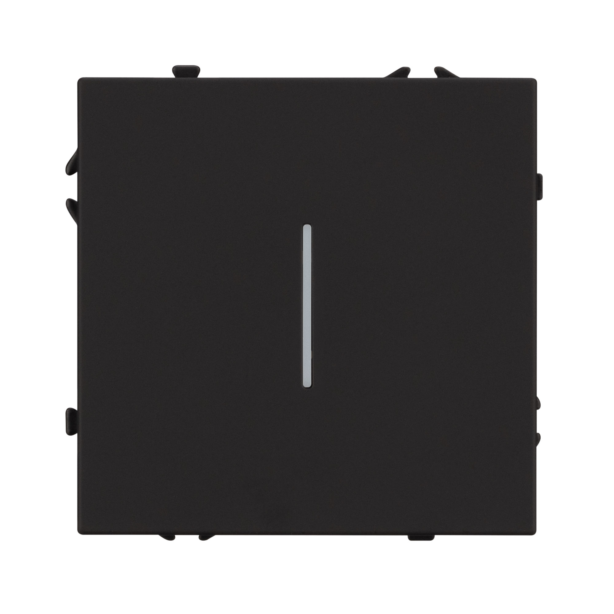 Механизм выключателя света клавишный на 1 пост 1 клавиша (проходной). Цвет - черный, с Soft-Touch покрытием. Клавиша имеют активную LED подсветку - cинего свечения. Без фронтальной рамки. Уровень пылевлагозащиты IP20. Выключатель устанавливается в стандартный круглый подрозетник круглого сечения диаметром 60мм.