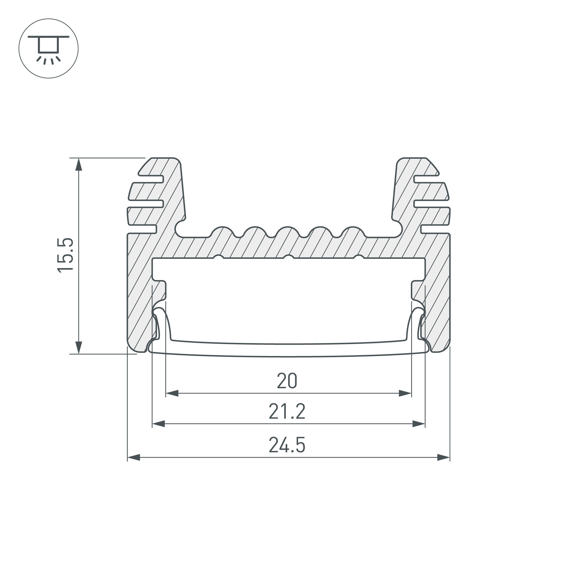 Алюминиевый анодированный накладной профиль для светодиодных лент и линеек. Габаритные размеры (L×W×H): 2000x24,5x15,5 мм. Ширина площадки для ленты 20 мм. Экраны, заглушки и другие аксессуары приобретаются отдельно. Цена за 1 метр.