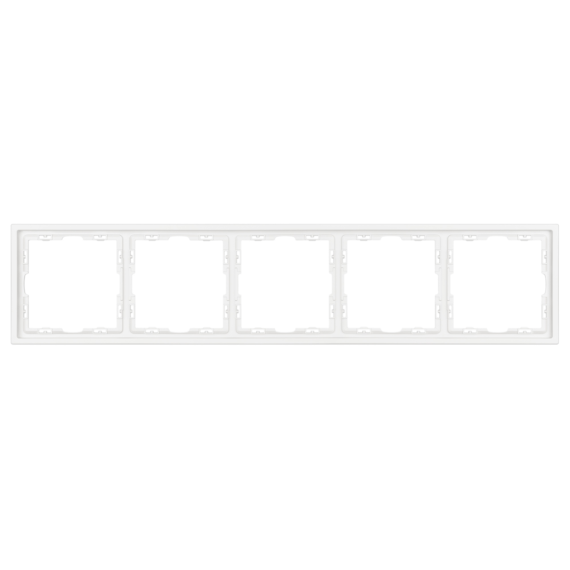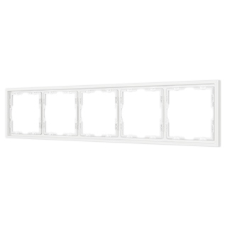 Рамка пластиковая на 5 постов, под встраиваемый механизм. Цвет - белый, с Soft-Touch покрытием. Среднего уровня герметичности IP20. Ориентация монтажа горизонтальная.