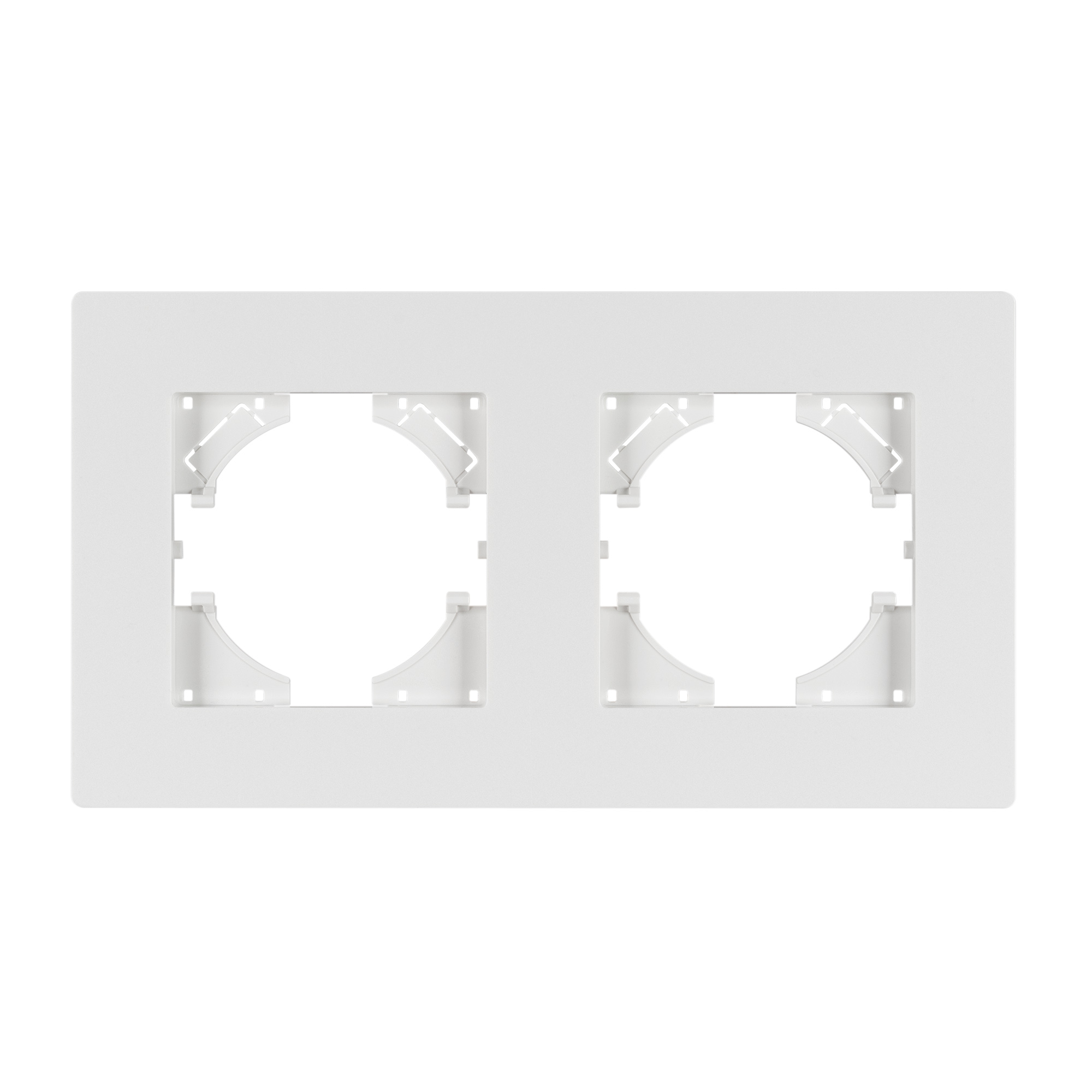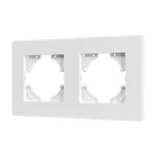 Рамка пластиковая на 2 поста, под встраиваемый механизм. Цвет - белый. Среднего уровня герметичности IP20. Ориентация монтажа - горизонтальная (основным ориентиром служат посадочные выступы для накладки механизма).