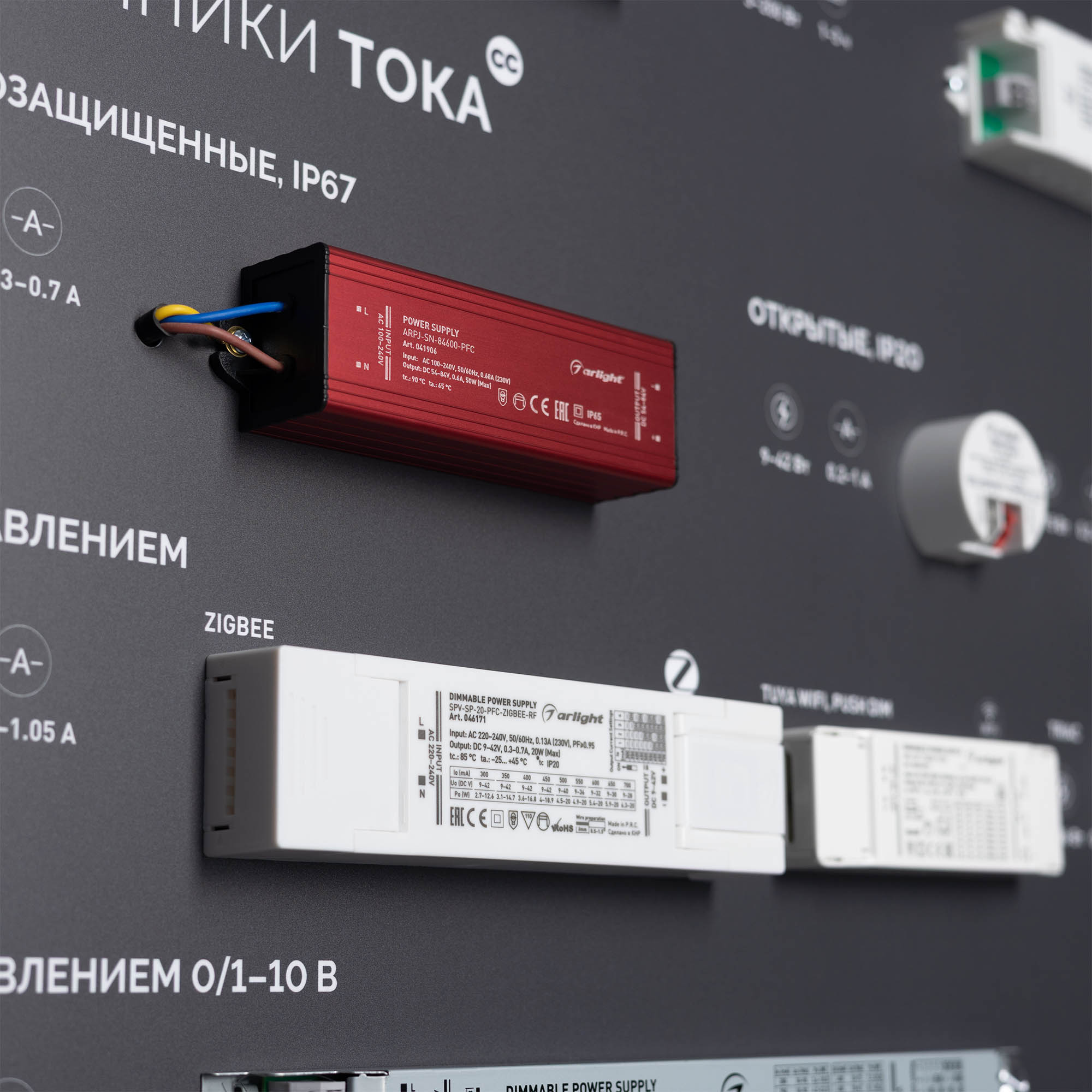 Представлен широкий ассортимент блоков питания Arlight для различных источников освещения: светодиодные ленты, светильники, мощные светодиоды и т. п.