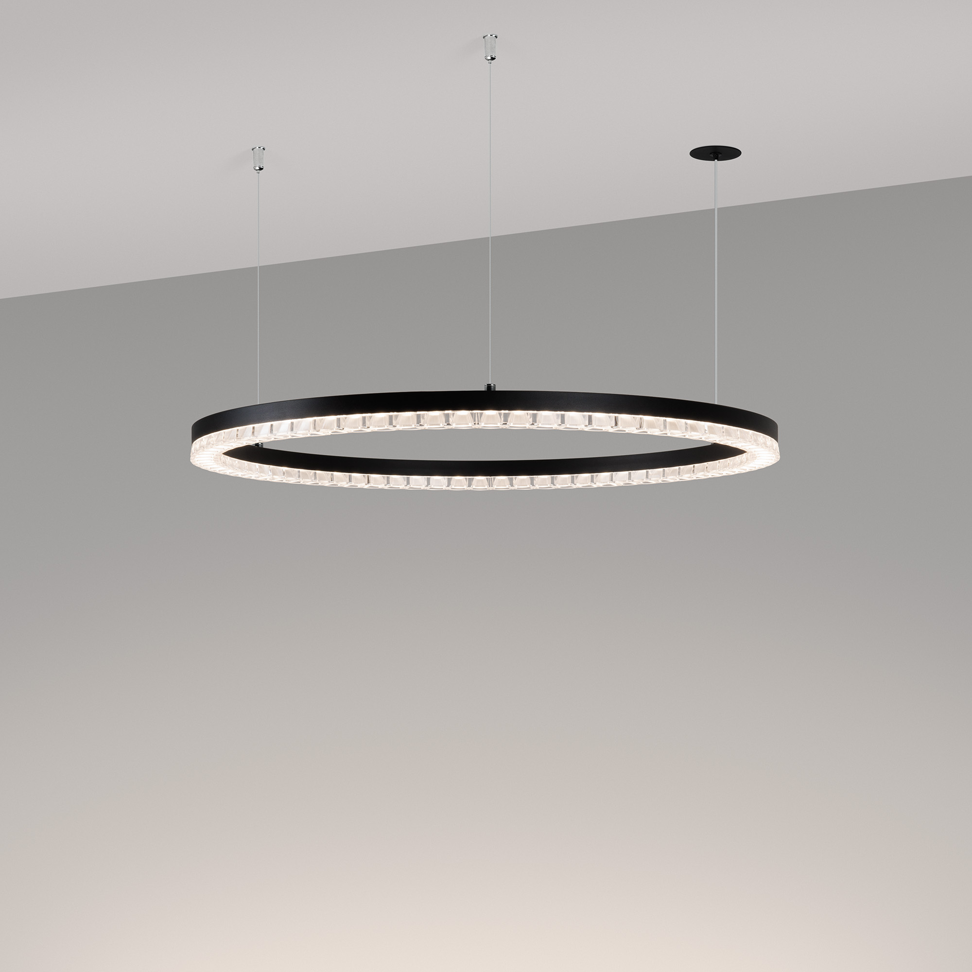 Подвесные светильники DIAMOND сочетают в себе одновременно функциональный и декоративный свет, зрительный комфорт и создание дизайнерских композиций! Cветильники DIAMOND - отличный выбор для освещения в торговых центрах, офисах, галереях, МОП жилых домов бизнес-класса и выше. Алюминиевый окрашенный корпус светильника выполнен в форме круга. Необычная форма рассеивателя с линзами, напоминающая ювелирное украшение, будет изысканно смотреться в разных интерьерах. Индекс CRI>90 отвечает за отличное восприятие и передачу цветовых оттенков. Средний угол излучения 45 градусов универсален для реализации различных задач в светотехнических проектах. Подключение осуществляется с помощью встроенного драйвера напрямую к сети переменного тока 230 В. Управление яркостью по протоколу TRIAC позволяет легко отрегулировать нужный уровень освещения. Низкая пульсация обеспечивает комфортное освещение без мерцания. Пылевлагозащита на уровне IP20 позволяет применять модель только внутри помещений.