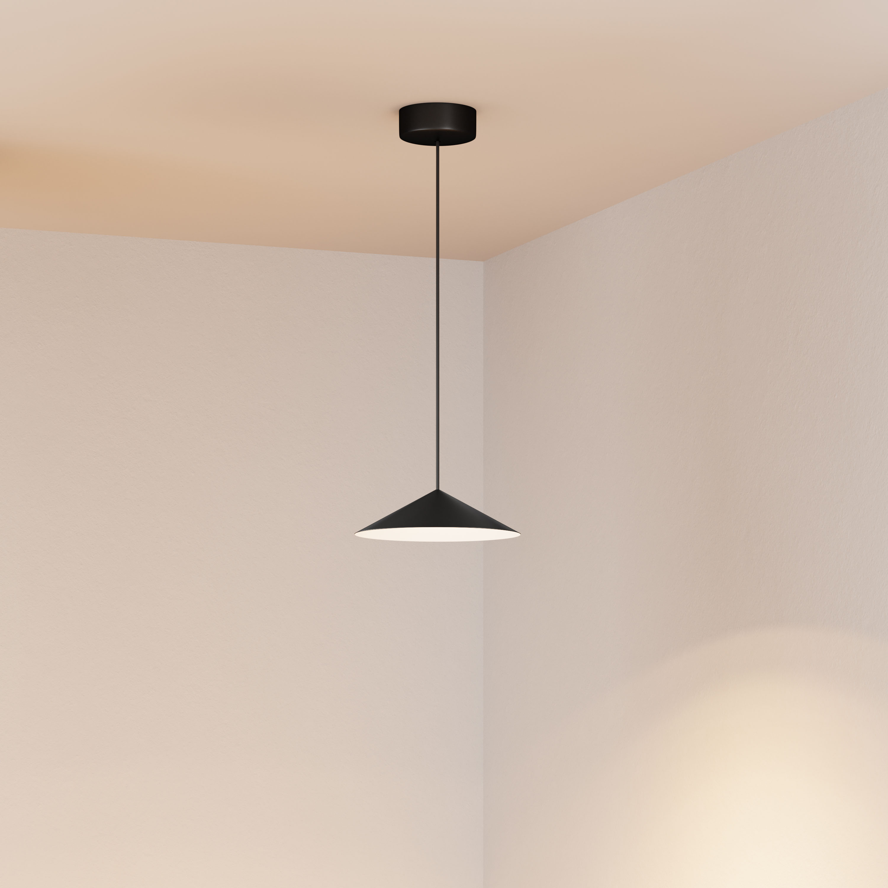 Подвесной светодиодный светильник MAKOTO мощностью 10 Вт, теплого цвета свечения 3000K предназначен для направленного декоративного освещения в жилых или коммерческих помещениях. Светильник с узким углом излучения 36 градусов оригинально дополнит интерьеры кухни-гостиной или зала кафе, ресторанов. Максимальная длина регулируемого подвеса 2300 мм. Подключение осуществляется с помощью входящего в комплект драйвера напрямую к сети переменного тока 230 В. Индекс CRI>97 отвечает за отличное восприятие и передачу цветовых оттенков. Низкая пульсация обеспечивает комфортное освещение без мерцания. Алюминиевый окрашенный корпус светильника выполнен в форме конуса. Пылевлагозащита на уровне IP20 позволяет применять модель внутри помещений, где нет контакта с водой или другими жидкостями. Управление яркостью по протоколу TRIAC и два вида чаши в комплекте - встраиваемая и накладная, позволяют смонтировать и настроить светильник под конкретные задачи.