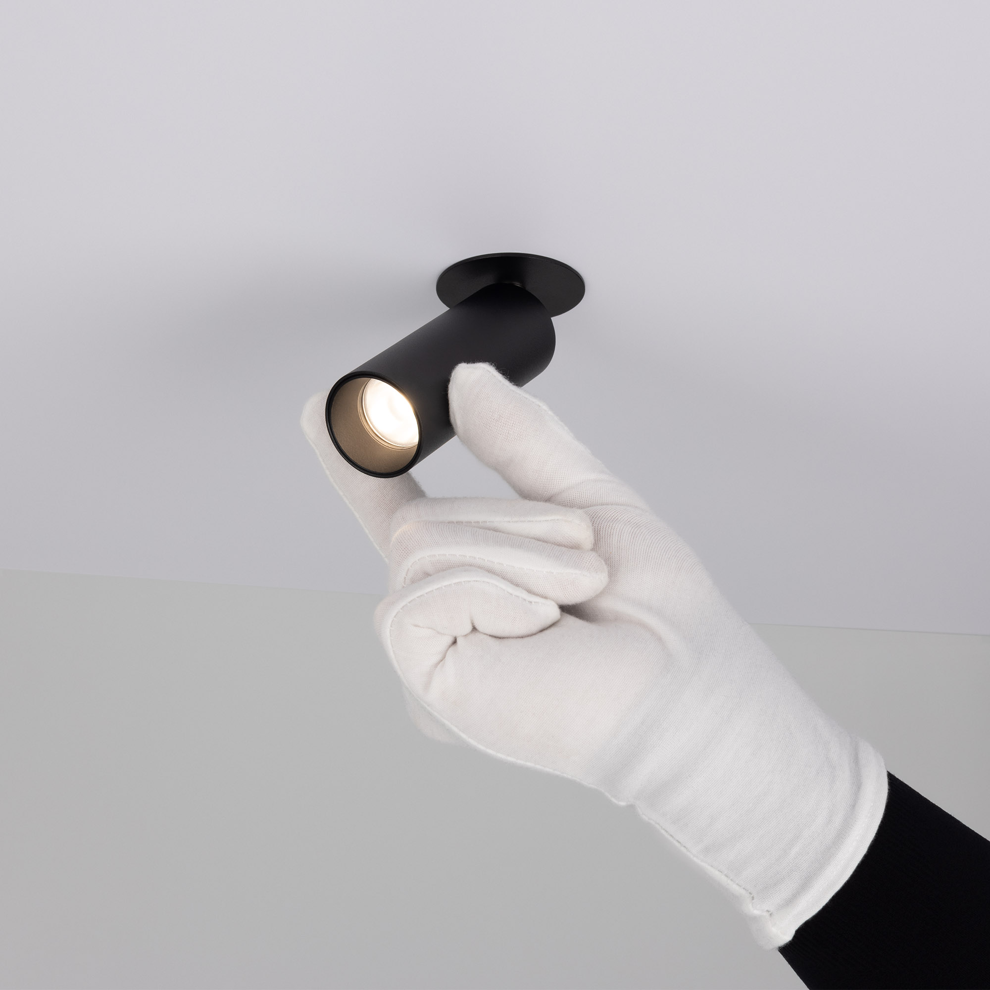 Светильник встраиваемый откидной. Мощность 7 Вт, св. поток 490 лм, 70 лм/Вт, теплый 3000 K, CRI>90, угол 36°, напряжение питания 230 В. Черный круглый корпус из алюминия, экран PMMA, степень защиты IP40. Размер: диаметр 35 мм, высота светового модуля 90 мм, высота основания 1.5 мм. Угол поворота 350°, угол наклона 90°. Монтаж встраиваемый, установочное отверстие: диаметр 45 мм, глубина 29 мм. Драйвер в комплекте 30-40 В, 150 мA, пульсация <1%.