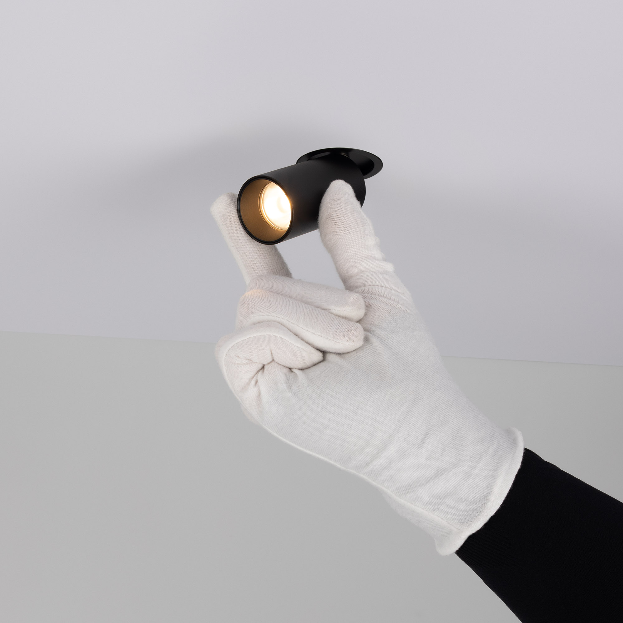 Светильник встраиваемый поворотный. Мощность 7 Вт, св. поток 490 лм, 70 лм/Вт, теплый 3000 K, CRI>90, угол 36°, напряжение питания 230 В. Черный круглый корпус из алюминия, экран PMMA, степень защиты IP40. Размер: диаметр 35 мм, высота светового модуля 65 мм. Угол поворота 360°, угол наклона 90°. Монтаж встраиваемый, установочное отверстие: диаметр 55 мм, глубина 73 мм. Драйвер в комплекте 27-50 В, 150 мA, пульсация <1%.